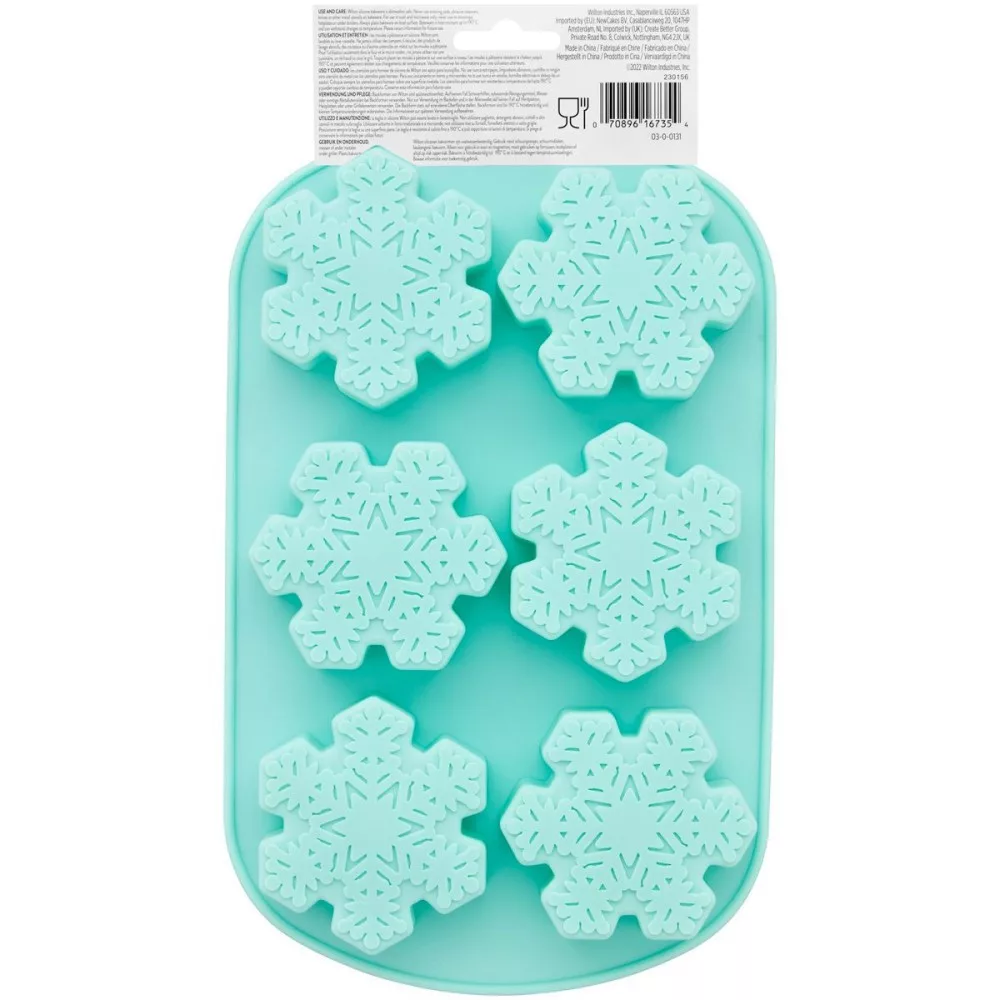 Készíts gyönyörű hópehely alakú finomságokat a Wilton szilikon formával. A 6 üreges, rugalmas szilikon forma ideális sütemények, csokoládék, cukorkák vagy jégkockák készítéséhez – tökéletes választás a téli ünnepekre.