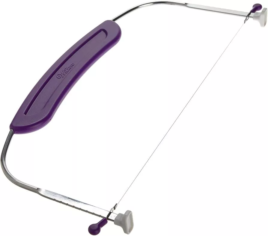 A Wilton tortaszeletelő segítségével tökéletesen egyenletes tortalapokat vághatsz akár 25 cm átmérőjű tortákhoz. Az állítható magasság, a hullámos vágódrót és a stabil lábak precíz, morzsa nélküli szeletelést biztosítanak.